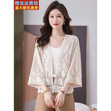 针织镂空勾花开衫女早秋外搭薄款上衣蕾丝衫防晒衫空调衫百搭披肩