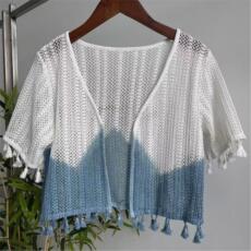 针织开衫小外套蕾丝度假防晒衫短款薄款空调衫花边宽松镂空披肩女