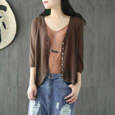 亚麻防晒针织衫开衫女薄款外搭空调衫秋季新款短款披肩小外套时尚