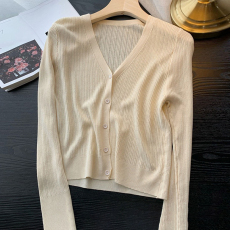 冰丝针织衫防晒开 衫薄款女夏季杏色罩衫披肩外搭上衣空调衫外套