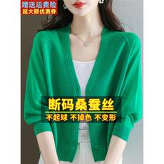 初春秋新桑蚕丝针织开衫女夏短款披肩配裙子小外套冰丝防晒空调衫