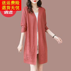 防晒衣女中长款宽松外搭空调开衫薄款夏季外披肩镂空外套冰丝针织