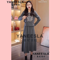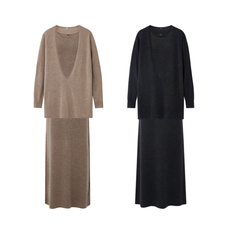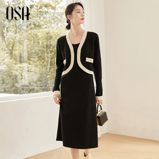 针织马甲连衣裙女两件套装2025秋冬新款高级感毛衣裙配大衣中长裙