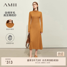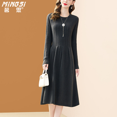 茗思纯羊毛内搭针织连衣裙冬季2024新款气质中长款过膝显瘦毛衣裙
