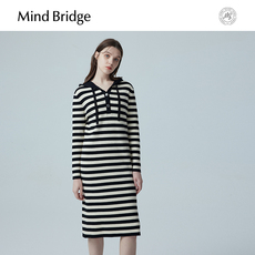 Mind Bridge秋季连帽中长裙子女士条纹连衣裙2025新款长袖针织裙