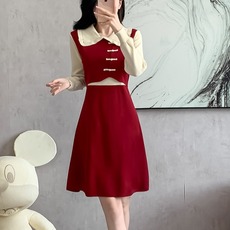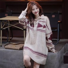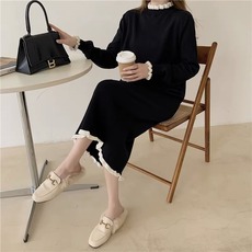 娃娃领针织连衣裙女秋冬爆款A字裙内搭中长款遮屁股打底毛衣裙子