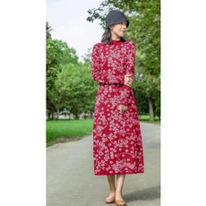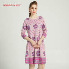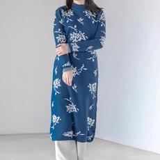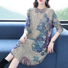 中年妈妈秋冬印花针织连衣裙宽松大码中长款打底衫高贵洋气毛衣裙
