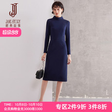 betu百图半高领打底裙女连衣裙2024年冬季新款高腰针织裙中长裙