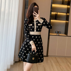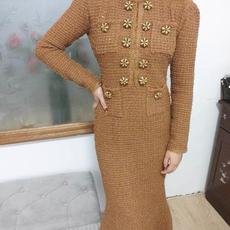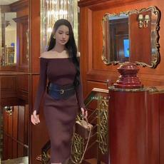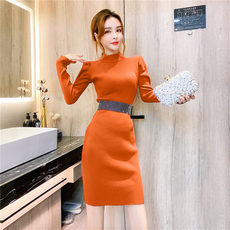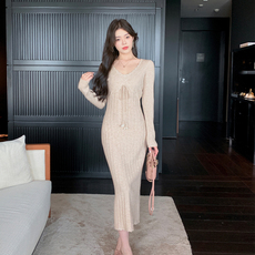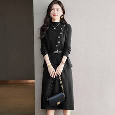 十三行秋冬新款小香风针织连衣裙女中长款修身气质a字打底毛衣裙