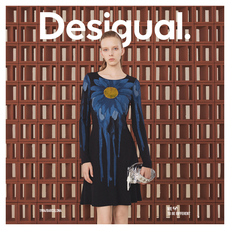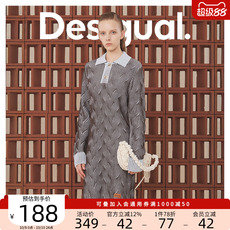Desigual针织直筒撞色提花翻领中长款连衣裙