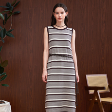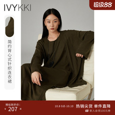 IVYKKI艾维简约背心针织连衣裙百搭开叉中长裙子女2025年秋季新款