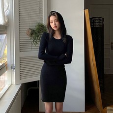 黑色包臀连衣裙女紧身秋冬圆领内搭修身显瘦中长款打底针织毛衣裙