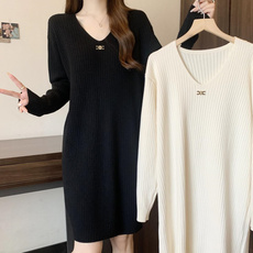 配大衣加厚毛衣女秋冬2025新款中长款打底衫内搭遮屁股针织连衣裙