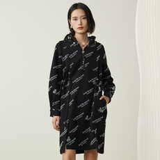 连帽针织连衣裙女2024春季新款复古宽松显瘦中长款过膝打底卫衣裙