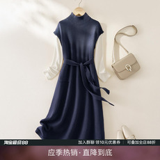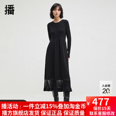 赢智尚outlet 2025秋新针织纱线拼接高级感收腰显瘦中长款连衣裙