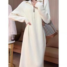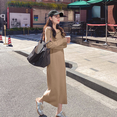 秋冬季法式中长款毛衣裙翻领拉链内搭针织卫衣连衣裙女配大衣打底