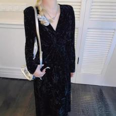 大码复古收腰显瘦长袖丝绒连衣裙女慵懒风中长款百搭针织开衫外套