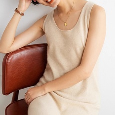 亲肤软糯~baby小纯山羊绒针织连衣裙女宽松中长款背心裙U领长裙