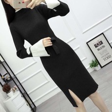 半高领毛衣裙针织连衣裙内搭秋冬女中长款过膝加厚打底长裙配大衣