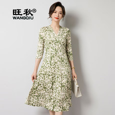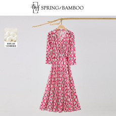 春竹针织真丝25夏100%桑蚕丝弹力裹身裙显瘦七分袖中长款连衣裙
