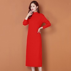 半高领红色针织连衣裙女2025新款秋冬收腰显瘦中长裙时尚一步裙