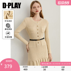脸儿艺 钉珠 优雅荷叶领 修身显瘦 打底长袖 针织 百褶连衣裙