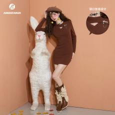 【ENG】Anomalies department 辣妹修身长袖针织连衣裙女 春