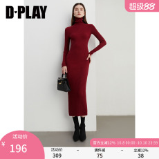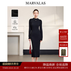 TRIBECA翠贝卡商场同款秋冬翻领修身针织毛衣连衣裙