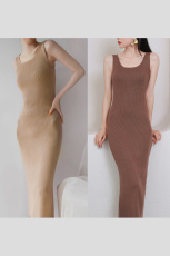 若浓 Curvy系列高弹力柔软度简单内搭背心修身针织连衣裙 棕色系