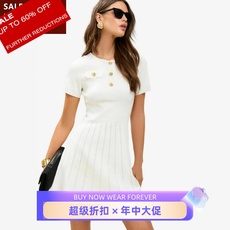 REISS长袖针织连衣裙百褶裙紫红色短款A字纯色气质英伦百搭舒适