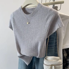 冰丝针织衫2025夏季薄款宽松圆领短袖糖果色打底衫女装t恤上衣潮