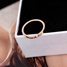 日韩版简约光面菱形精致钨钢镀玫瑰金钨金戒指女款食指环戒子饰品