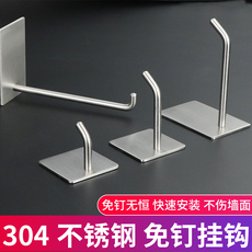 不锈钢免打孔挂钩强力承重粘胶厨房墙壁挂钩一排浴室门后挂衣钩子