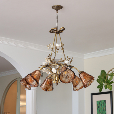 洛西可 美式复古风格中古法式玻璃吊灯 轻奢客厅卧室餐厅全铜灯具