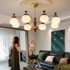 法式复古北欧客厅吊灯全铜胡桃木美式简约卧室餐厅中古新款灯具