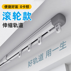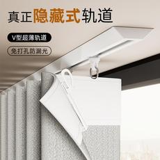 窗帘轨道静音铝合金免打孔滑轨阳台飘窗顶装侧装防漏光单轨双轨