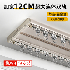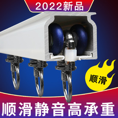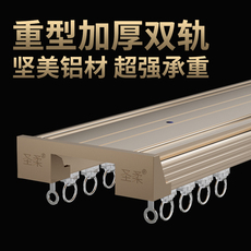 特厚窗帘轨道静音铝合金重型一体双轨道滑轨轨道顶装直轨轴承轮