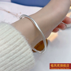纯银个性时尚日韩光面纯银手镯配饰男女简约开口手环刻字生日礼物