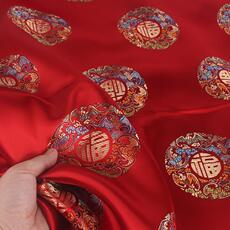 加厚织锦缎五福团提花仿古旗袍传统喜庆布料中国风抱枕红底圆福字
