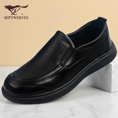 七匹狼透气男士皮鞋秋季新款英伦风真皮男鞋黑色镂空商务休闲鞋男