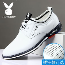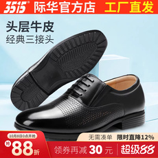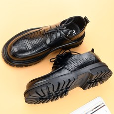 皮鞋男款夏季透气镂空休闲厚底内增高男士商务正装工作低帮马丁靴