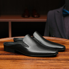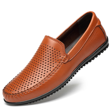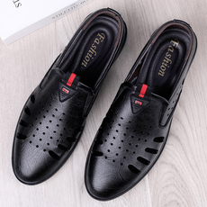 头层牛皮镂空透气皮鞋男士真皮商务休闲洞洞纯皮凉鞋一脚蹬懒人鞋