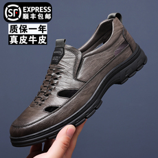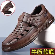 牛筋底男鞋夏季透气镂空皮鞋男士真皮凉鞋软底防滑中年爸爸休闲鞋