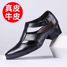 夏季新款凉鞋男士真皮休闲鞋韩版镂空尖头内增高皮鞋透气洞洞鞋男