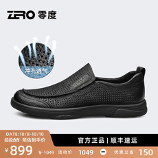 ZRO零度一脚蹬男鞋夏季薄款打孔透气真皮防滑套脚镂空休闲皮鞋男
