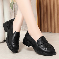 厚底镂空真皮乐福鞋女2025新款小皮鞋厚底百搭女鞋休闲一脚蹬单鞋