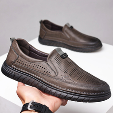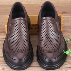软底一脚蹬男鞋商务爸爸中年男士通勤透气镂空真皮休闲皮鞋男款