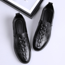 真皮休闲皮鞋男款2025新款夏季镂空透气一脚蹬男鞋开车软底豆豆鞋