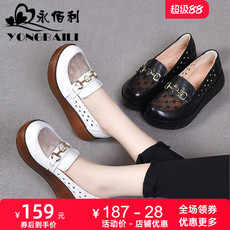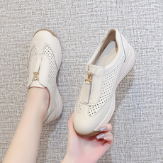 2025秋季新款原创厚底真皮单鞋女圆头镂空休闲牛皮女鞋舒适皮鞋