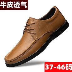 男鞋大码45头层牛皮46英伦休闲皮鞋商务正装休闲鞋男镂空新郎婚鞋